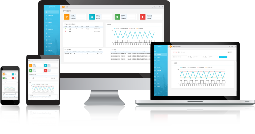 • - PC, 노트북, 태블릿, 모바일에서 현재 수위, 펌프 가동 , 고수위 저수위 설정을 모니터링 할 수 있습니다.