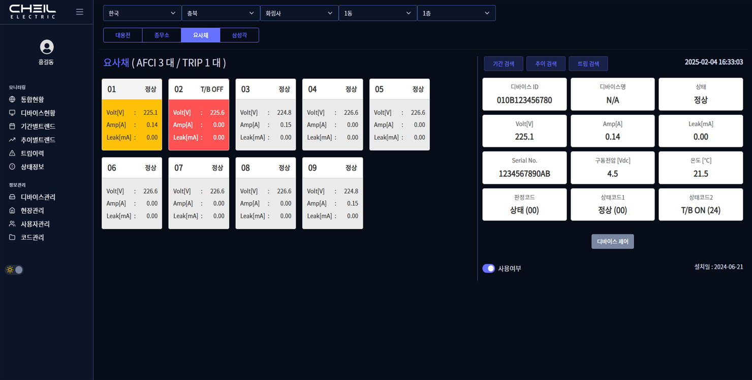 • -실시간 현장 시설 및 사업소별 차단기 현황