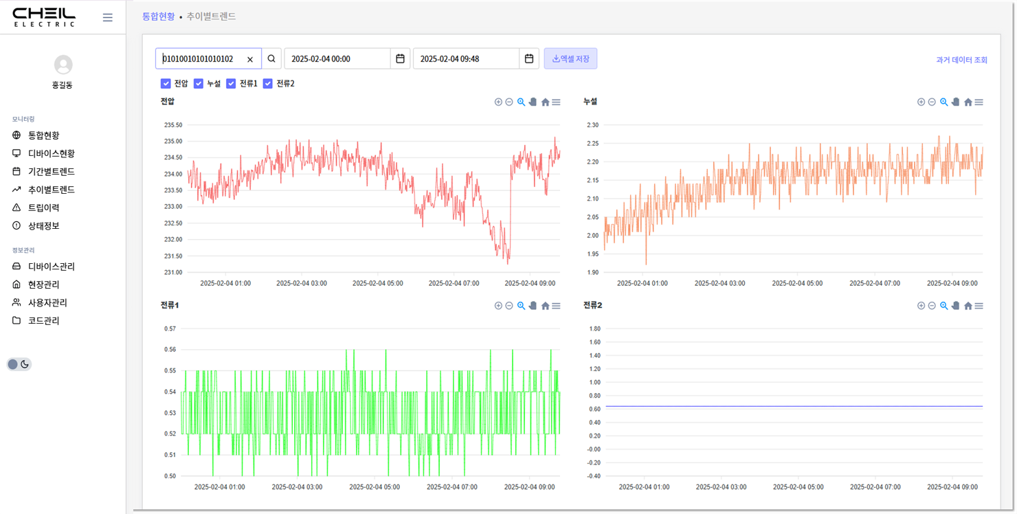 • -전압, 전류, 전력, 수위, 누전위험, 비상발전기 가동 알림