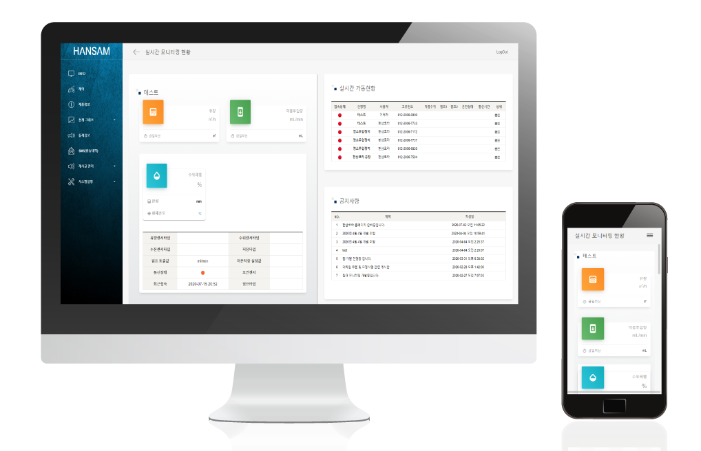 장비의 정보를 유무선 방식으로 서버로 전송하고 웹 또는 모바일에서 모니터링 및 제어정보를 컨트롤 할 수 있으며, 원격장비의 가동상태 및 조건등을 모니터링 할 수 있습니다.