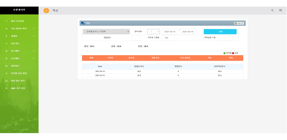• -온도설정, 수동제상, 장비별 환경 제어 설정