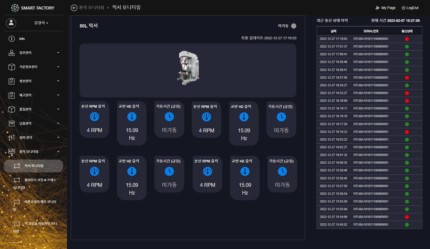 • -냉동기,증발팬,전자변 등 실시간 모니터링