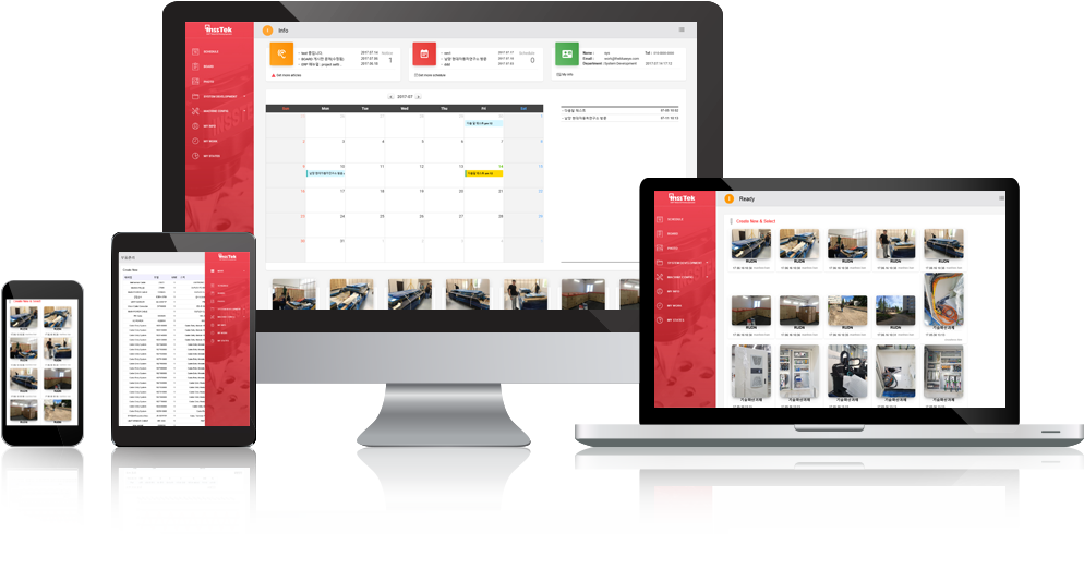 • - 현장에서 직접 체크 하지 않아도 시스템을 통해 장비제작, 자재 및 부품등을 관리할 수 있습니다.