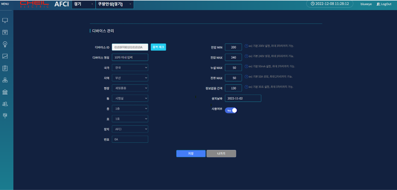 • -시설, 사업소, 펌프, 차단기 관리 및 설정