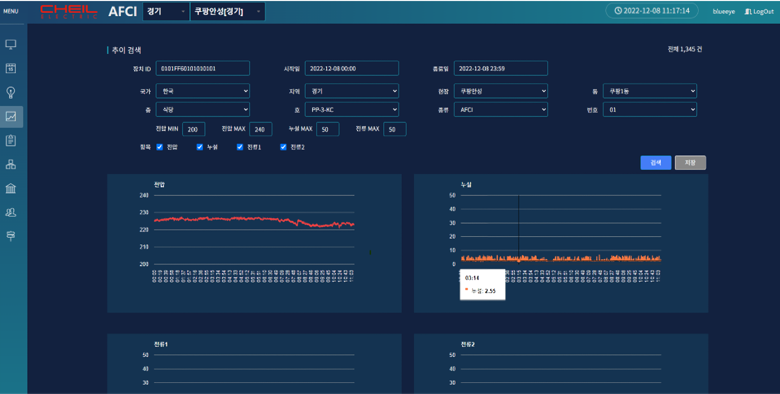 • -전압, 전류, 전력, 수위, 누전위험, 비상발전기 가동 알림