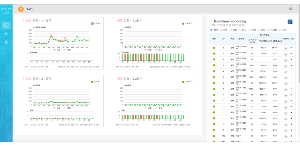 • -실시간 제어(펌프운전방식, 펌프 on/off 등)