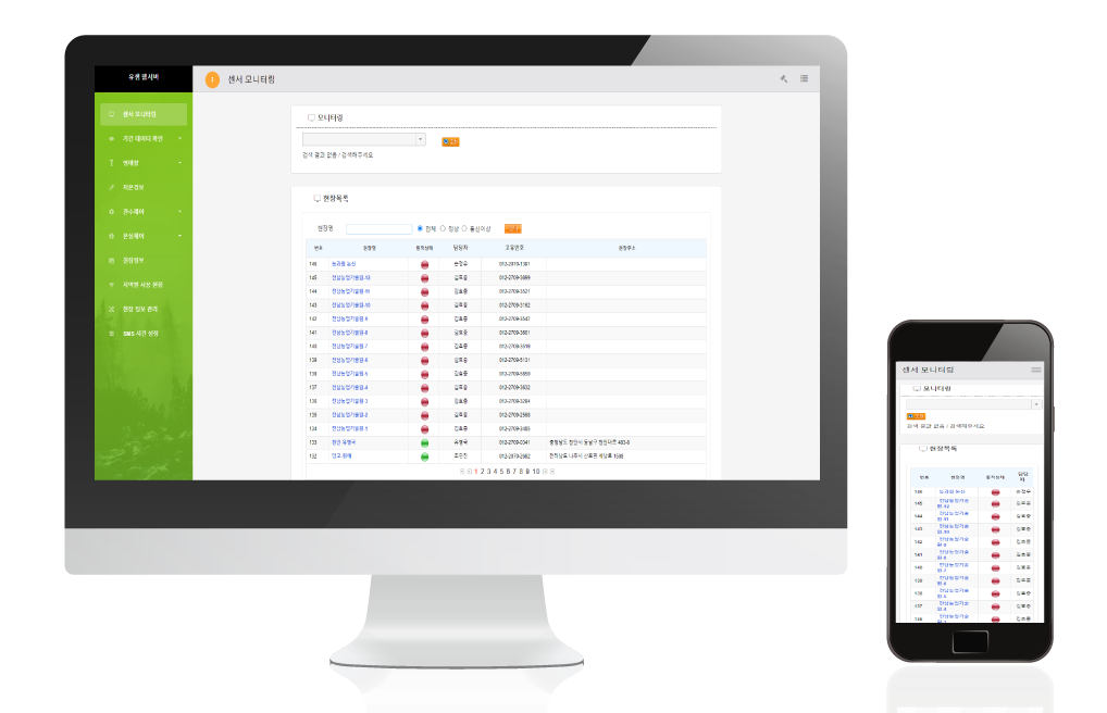 장비의 정보를 유무선 방식으로 서버로 전송하고 웹 또는 모바일에서 모니터링 및 제어정보를 컨트롤 할 수 있으며, 원격장비의 가동상태 및 조건등을 모니터링 할 수 있습니다.